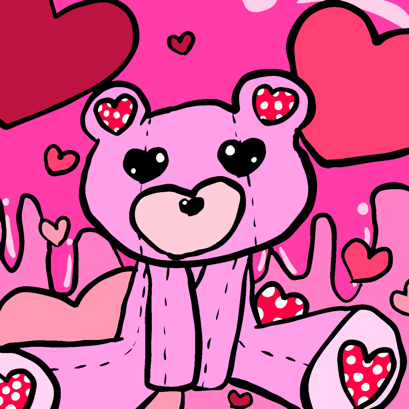 耳や肉球、目や顔の一部がハートなぬいぐるみクマのキャラを考えて描いてみました。