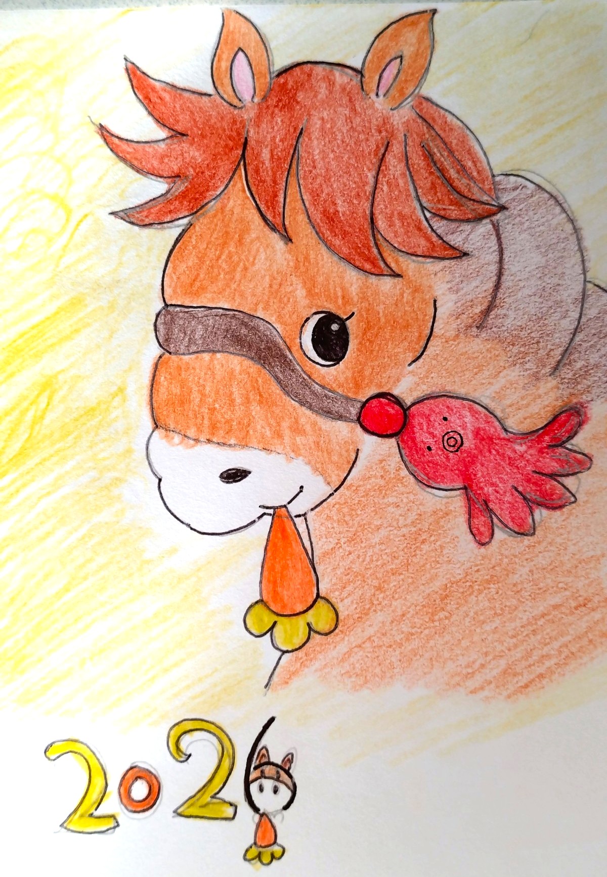 馬はあまり描いたことが無かったので年賀状の冊子を見て参考にしながら描きました。