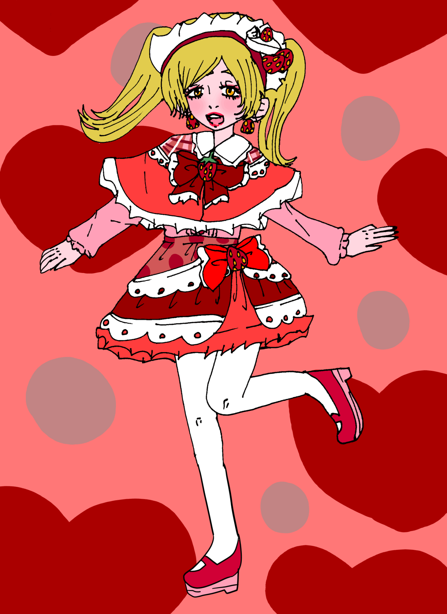 ショートケーキモチーフのロリータコーデを描いてみました。