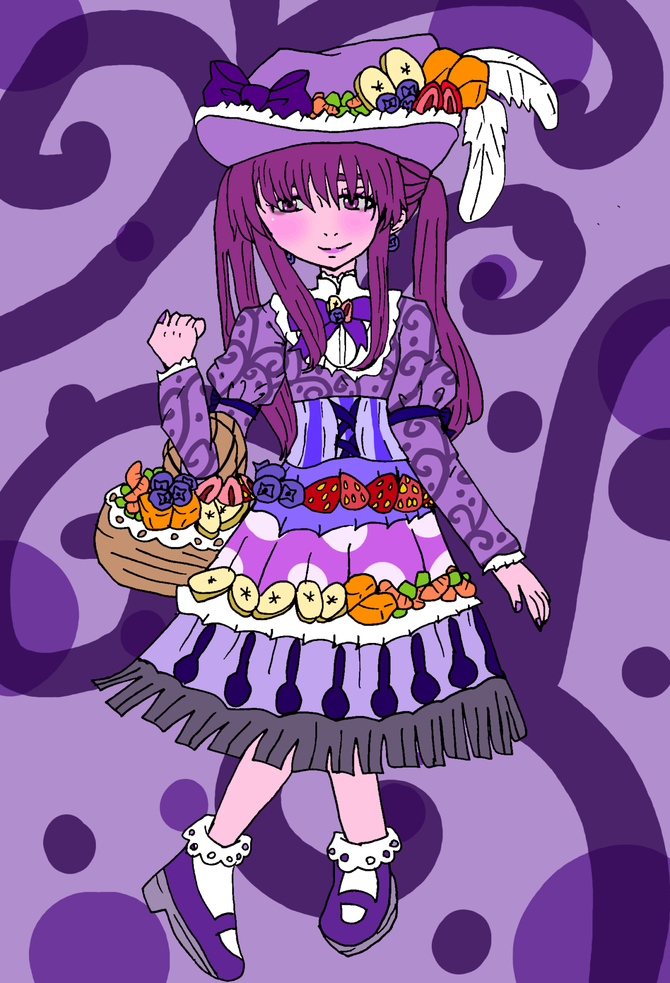 前に流行ったアサイーというスイーツのモチーフのロリータコーデを考えて描いてみました。