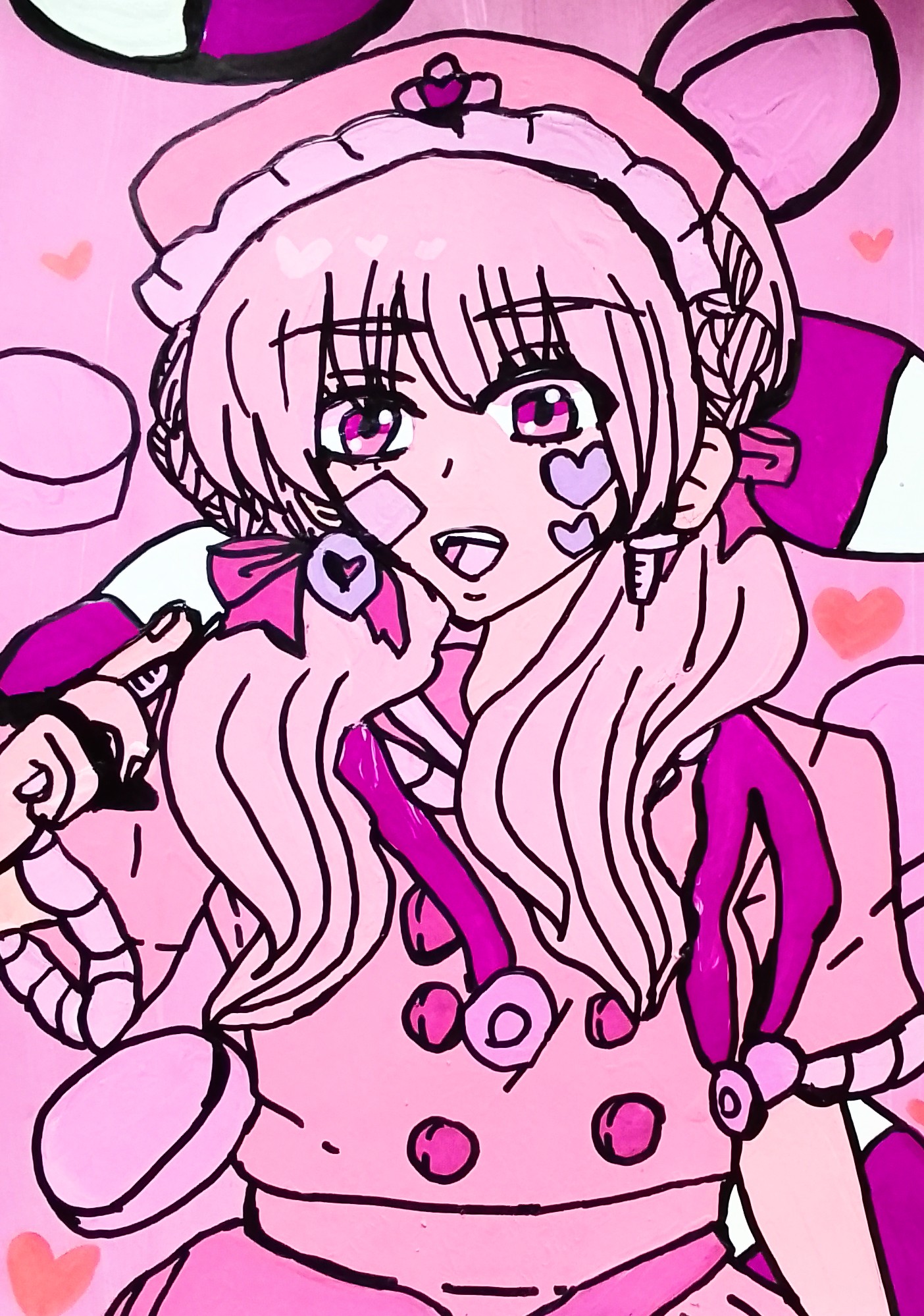 ピンク色の服装が可愛いナースの少女を描いてみました。