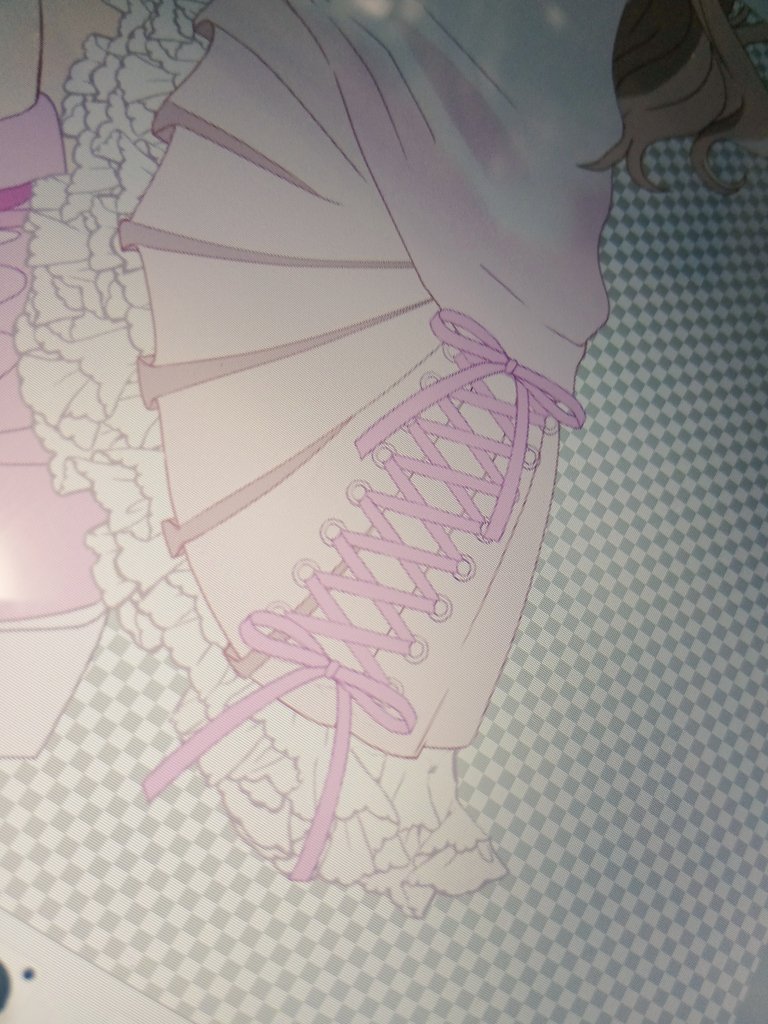 描き始めはフリルや小物もなくて、“やさしいほほ笑み”の女の子でした。