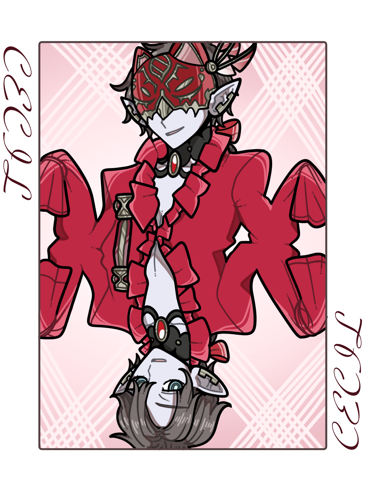 私はトランプのような構図が好きなので、、、このような一枚絵が描けて嬉しいです!あと左右反転に描くのがなかなか時間がかかったし難しかったです、、、笑