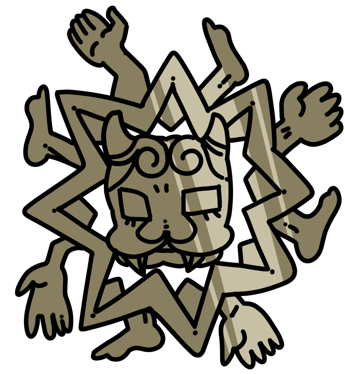 このマークのグループ名は「鬼門」という架空3人組女性バンドグループです。(このグループ名の読み方は「おにかど」です)