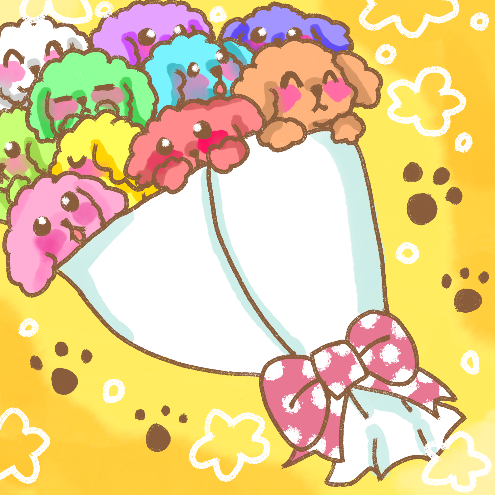 可愛くてふわふわでもこもこなプードルをブーケにして描いてみました。パステルカラーな毛並みも可愛すぎる♡