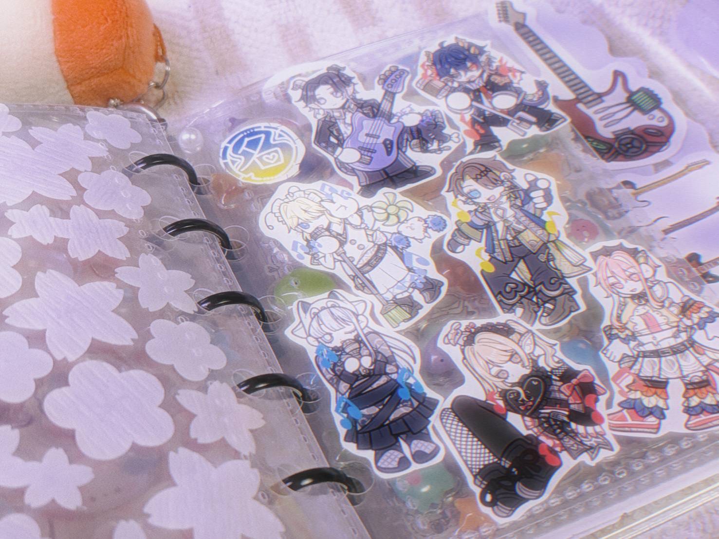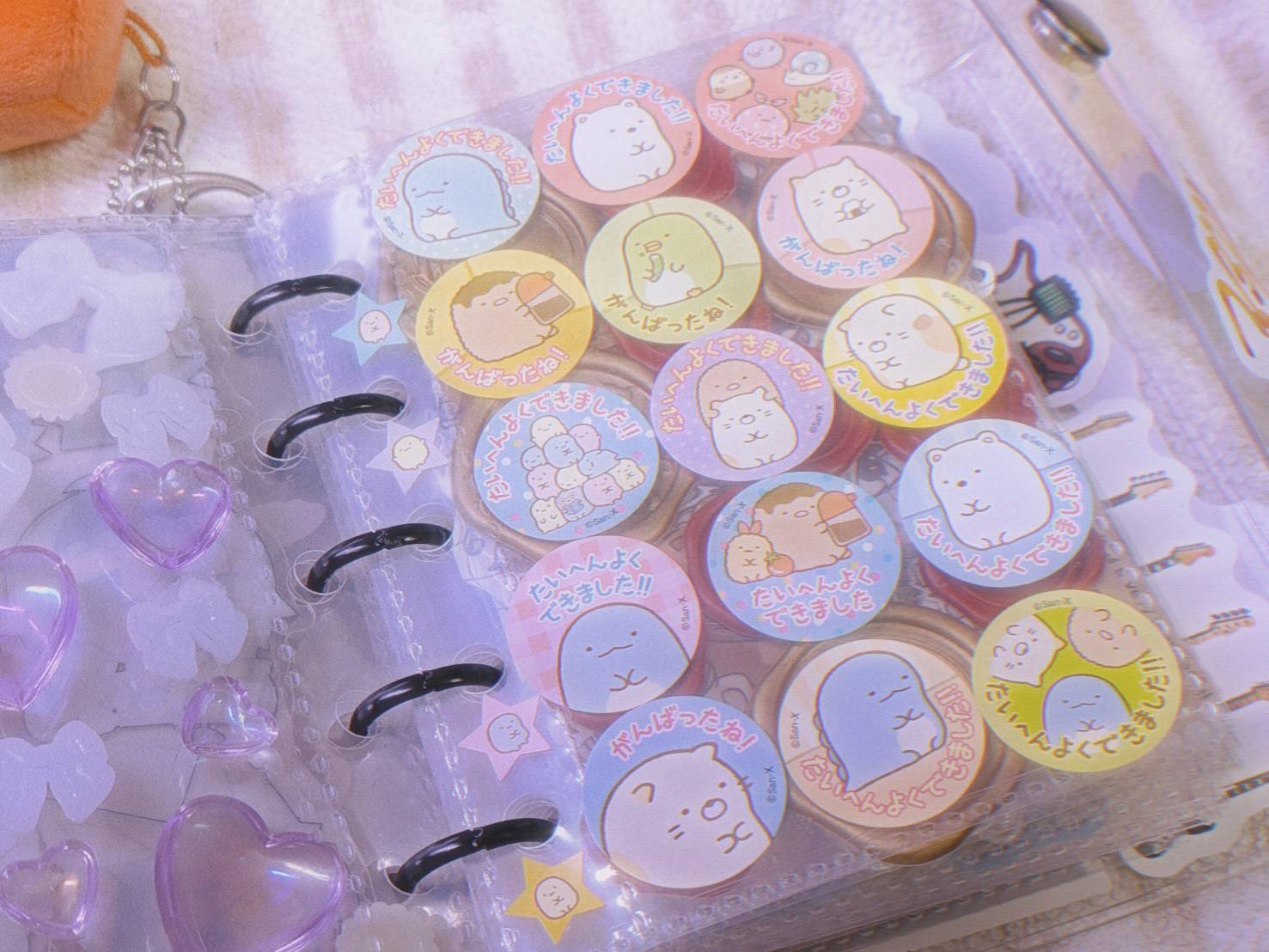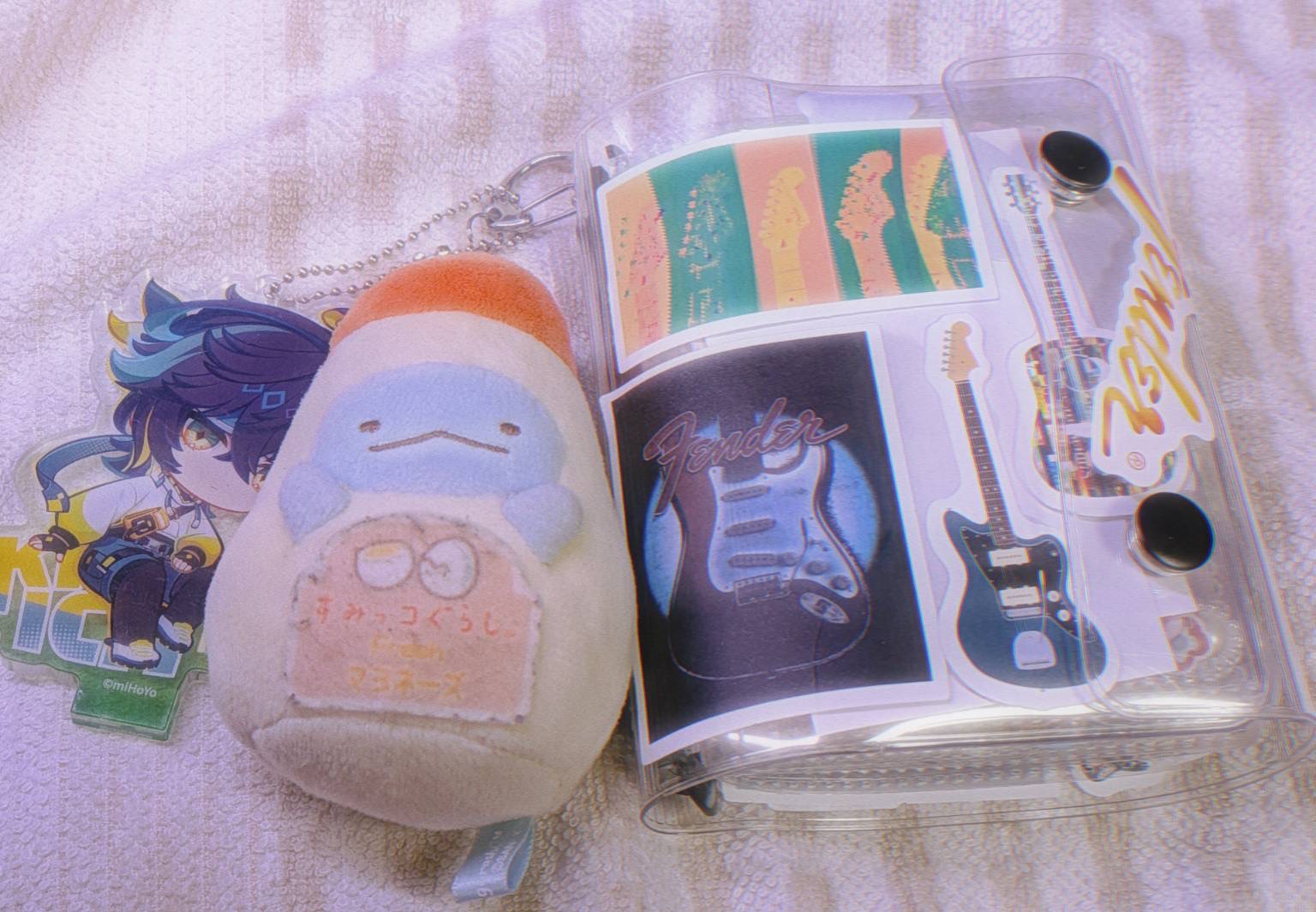 また、シール帳の穴部分につけたチェーン付きぬいぐるみ(すみっコぐらし)とアクリルキーホルダー(原神)があります〜。