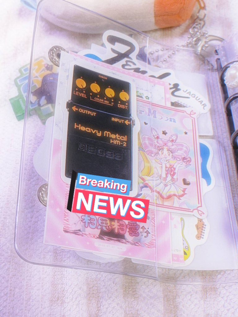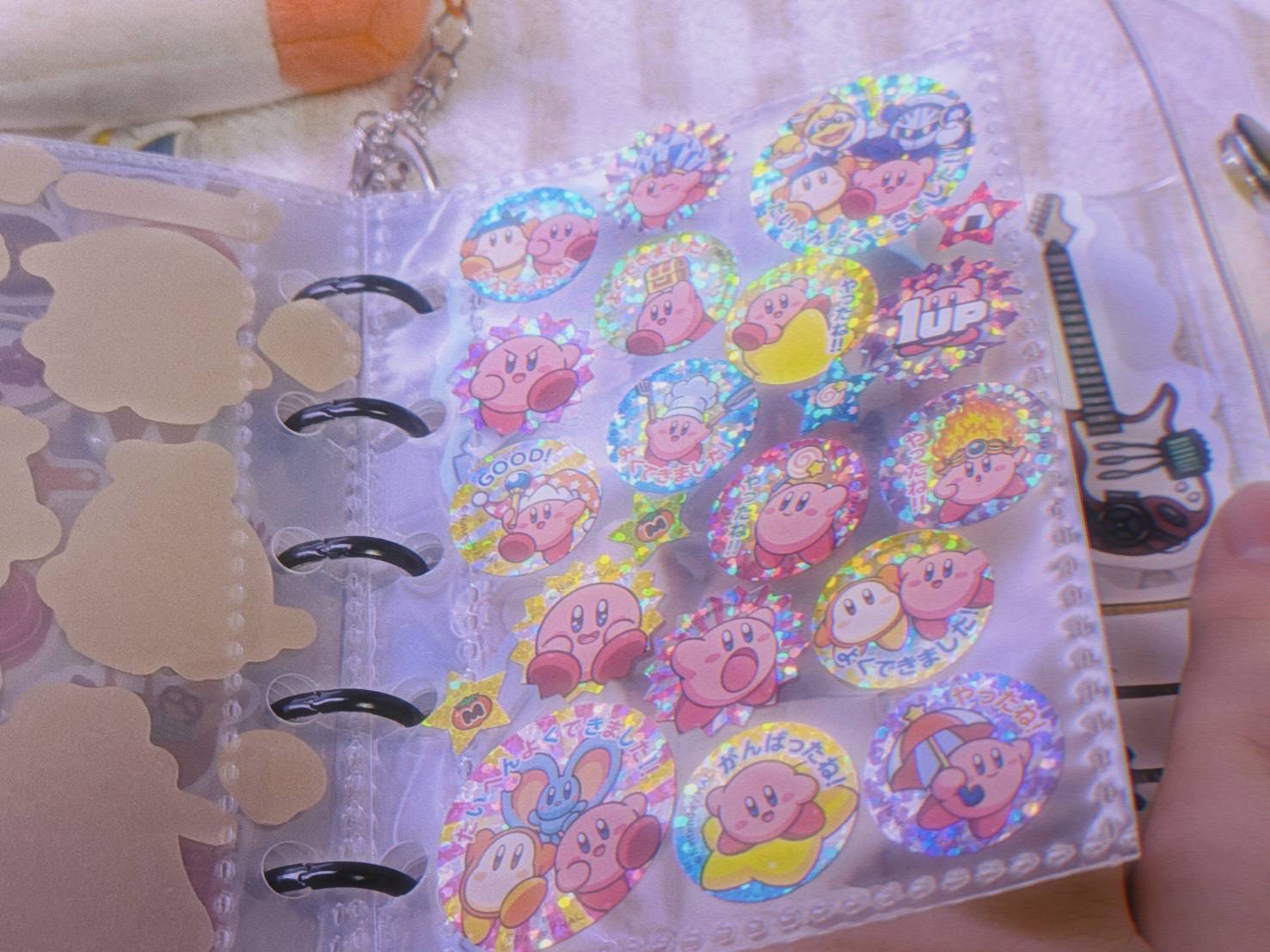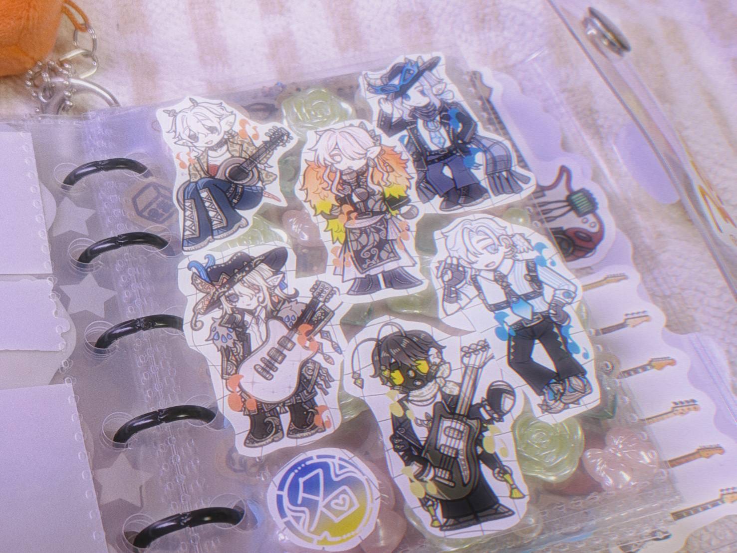 まず表面部分には大手通販サイトで購入したギターのステッカーです〜。私はシール帳の表面にもこだわりたい派なので、ペタペタ貼りました!
