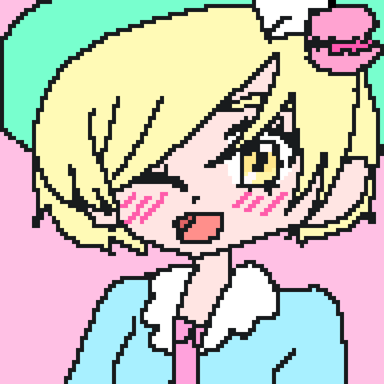 ましゅまろまかろんちゃんを描いてみました。ドット絵でまつ毛描くの難しかった~。