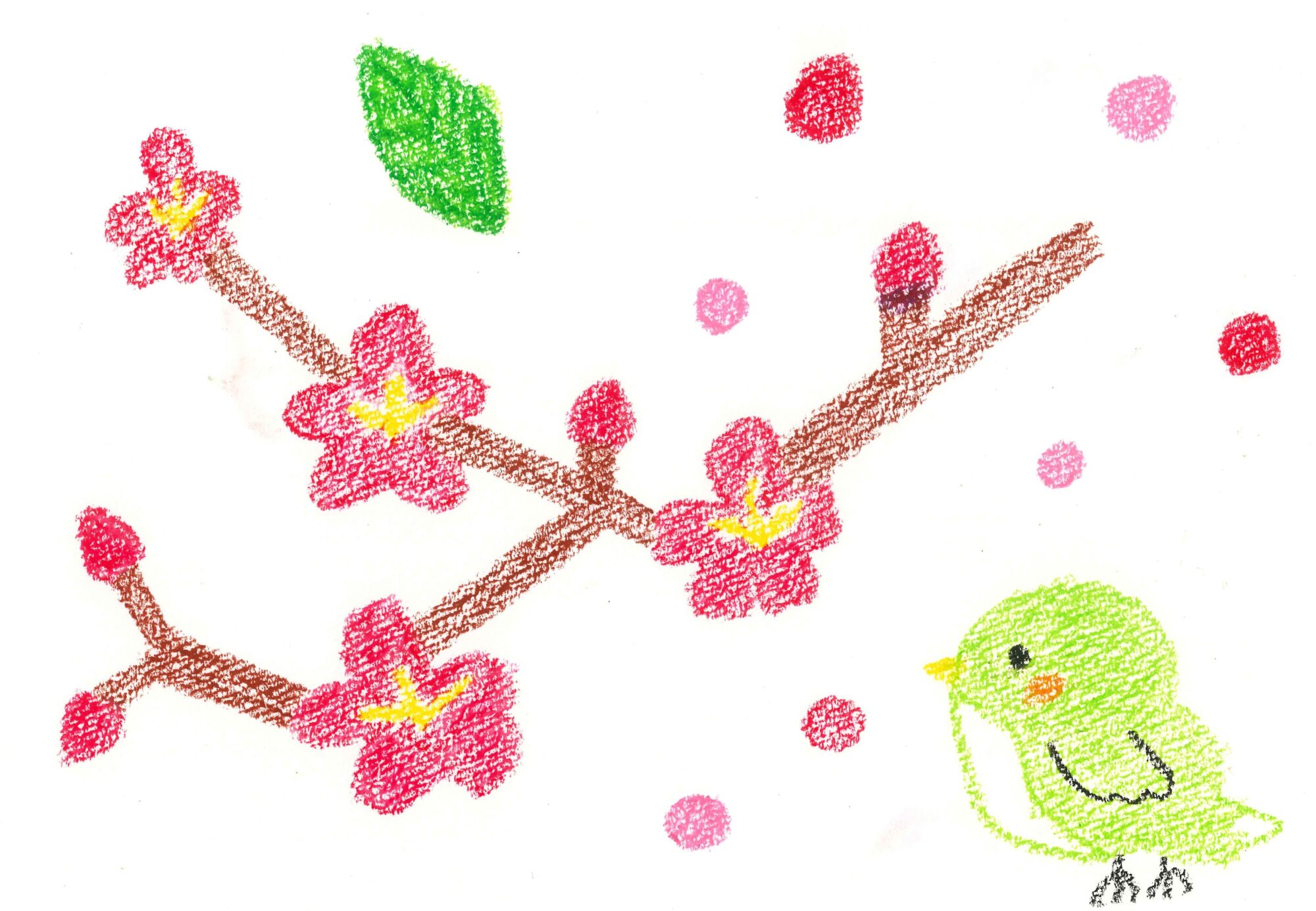力強く咲く、梅の花と、可愛らしくウグイスを描いてみました。