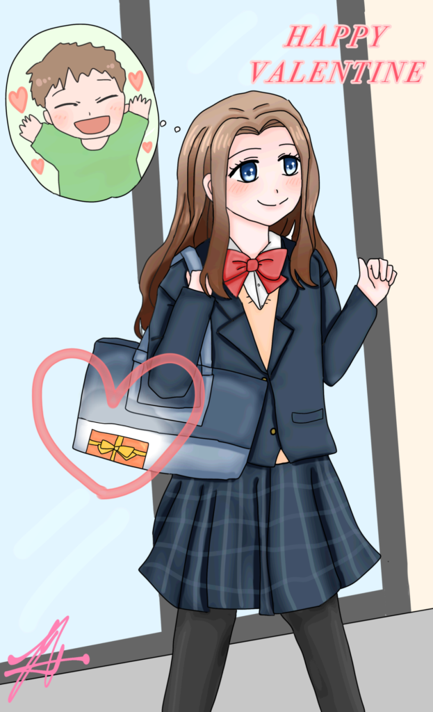 バレンタインをテーマにイラストを描きました。