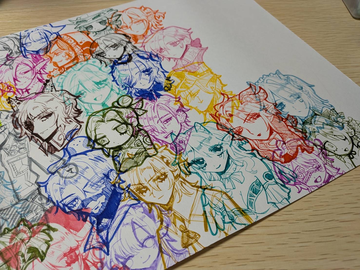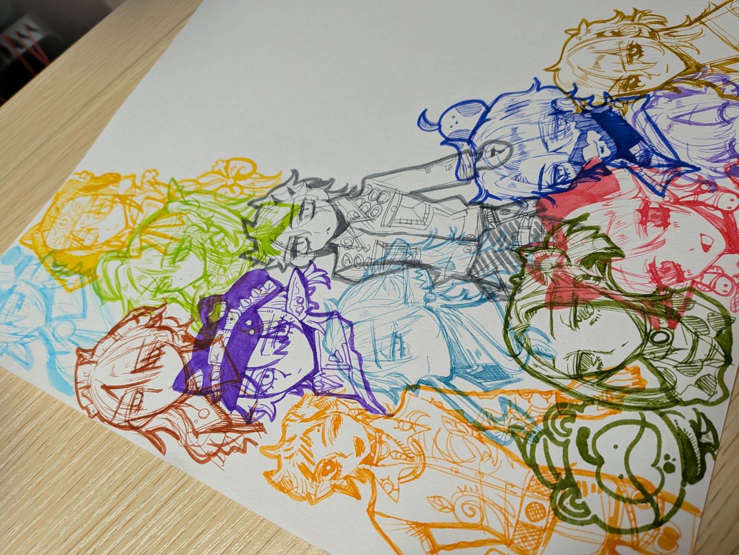 あとこのイラストは誰に送るかは秘密なのですが、「こんなにキャラクターがいる」という事を絵で表せたので良かったと思います。