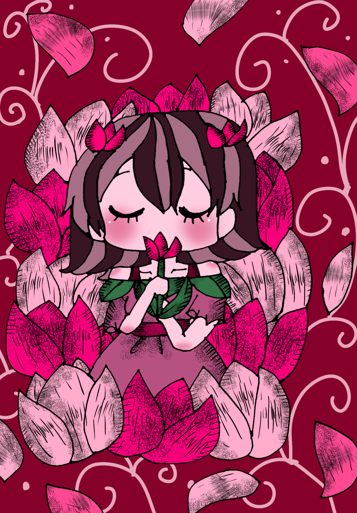 ピンク色のチューリップの花言葉をモチーフに描いてみました。