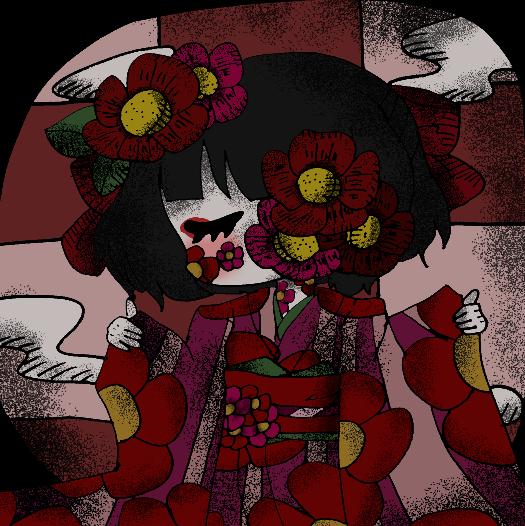 椿の花言葉の「優美」や「控えめな優しさ」などモチーフに和モダンっぽく描いてみました!