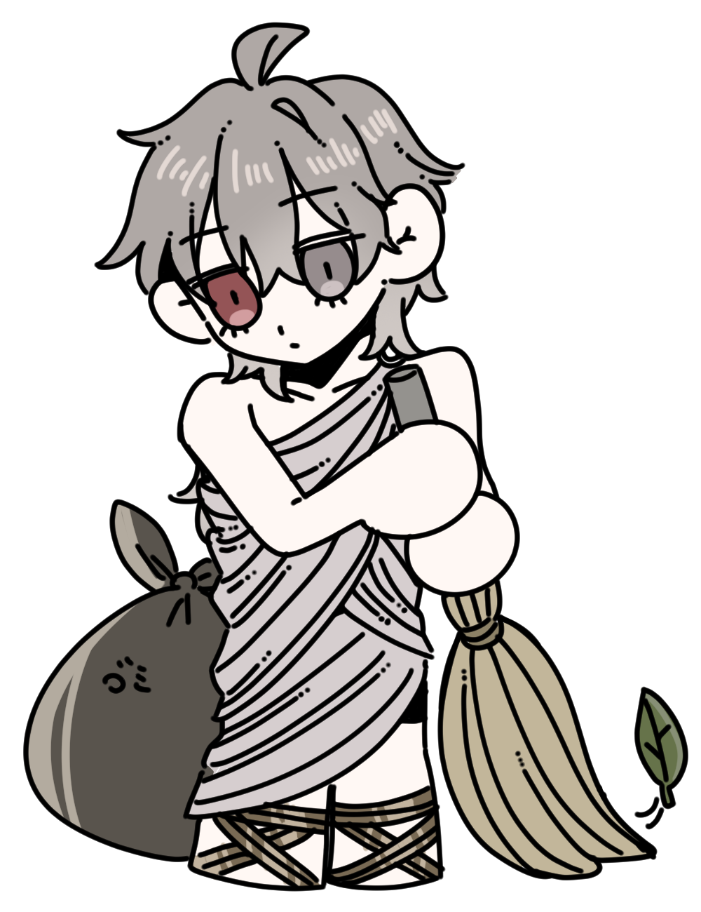 ↓兜を脱いだ時のイラストです。こんな髪型をしています、、、!(描いた時期が前なので絵柄が違うかもです)