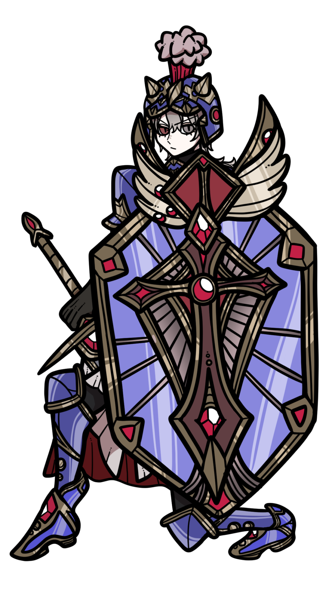 こんな感じのキャラクターです!このキャラクターは鎧を着ていて何か強そうなものを持ってそうな感じですね、、、。真ん中の盾も気になりますね、、、。