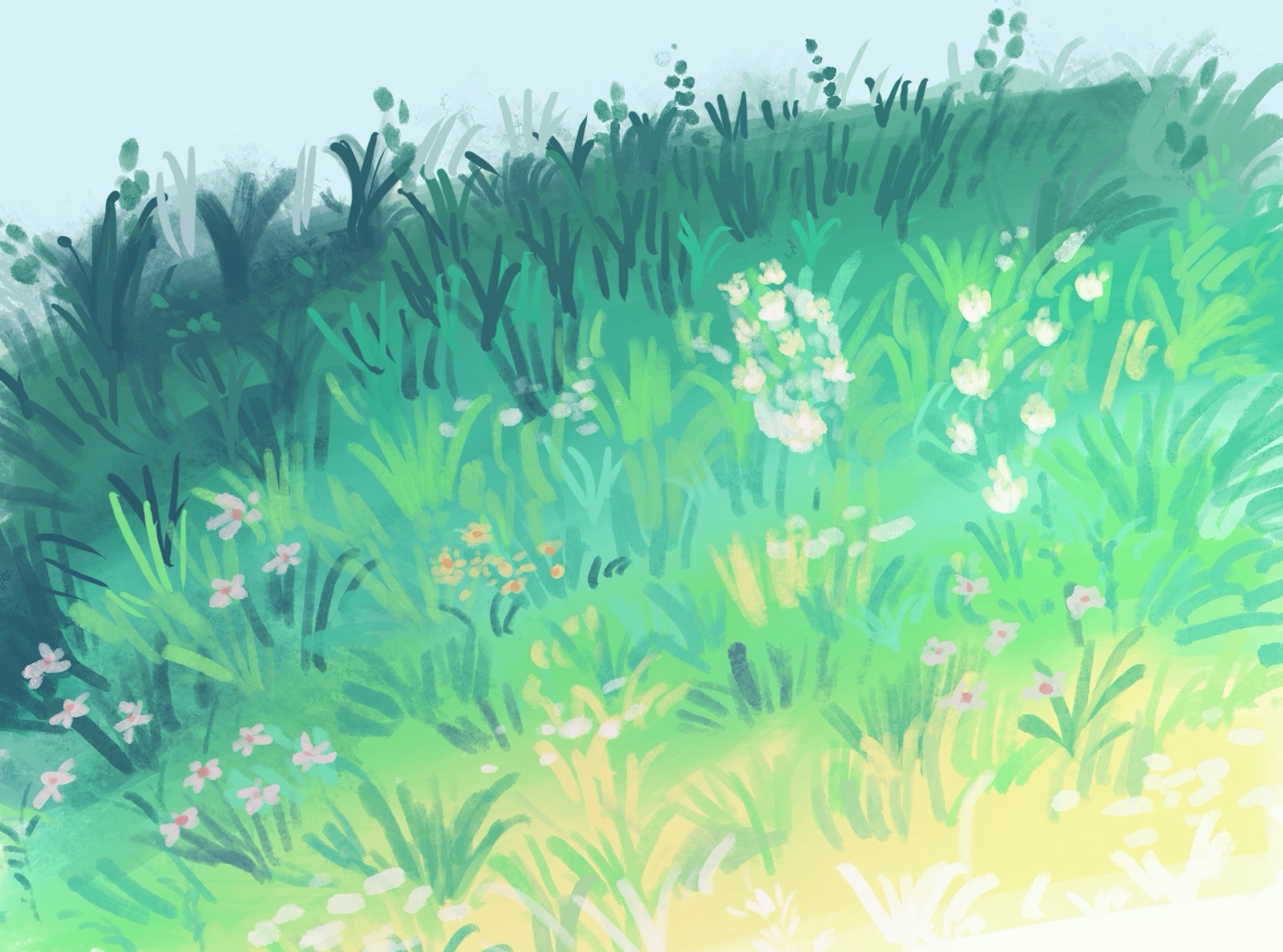 今回は動物から離れて草原を描いてみました