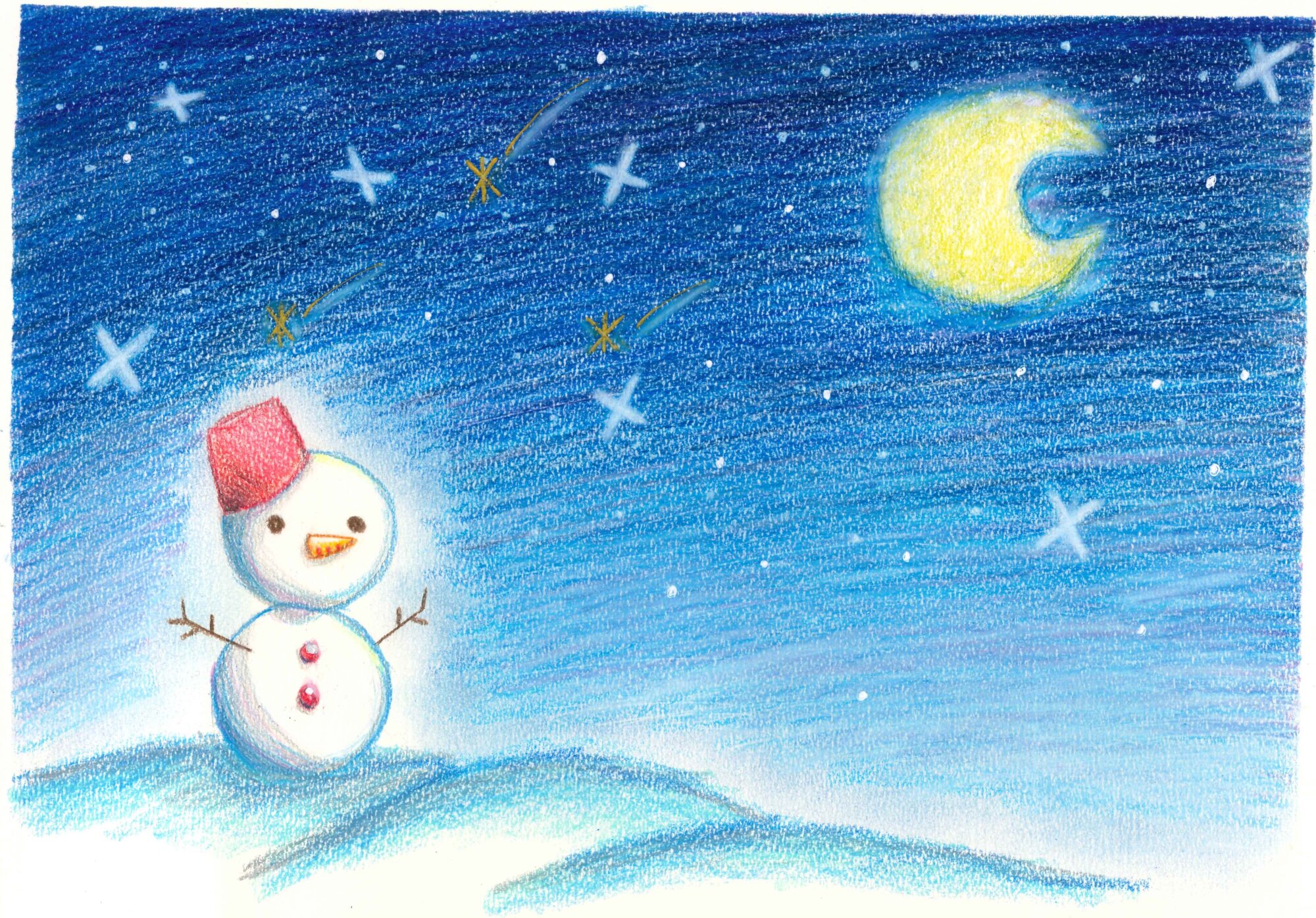 星降る夜空のしたに、ひっそりとたたずむ雪だるま…。