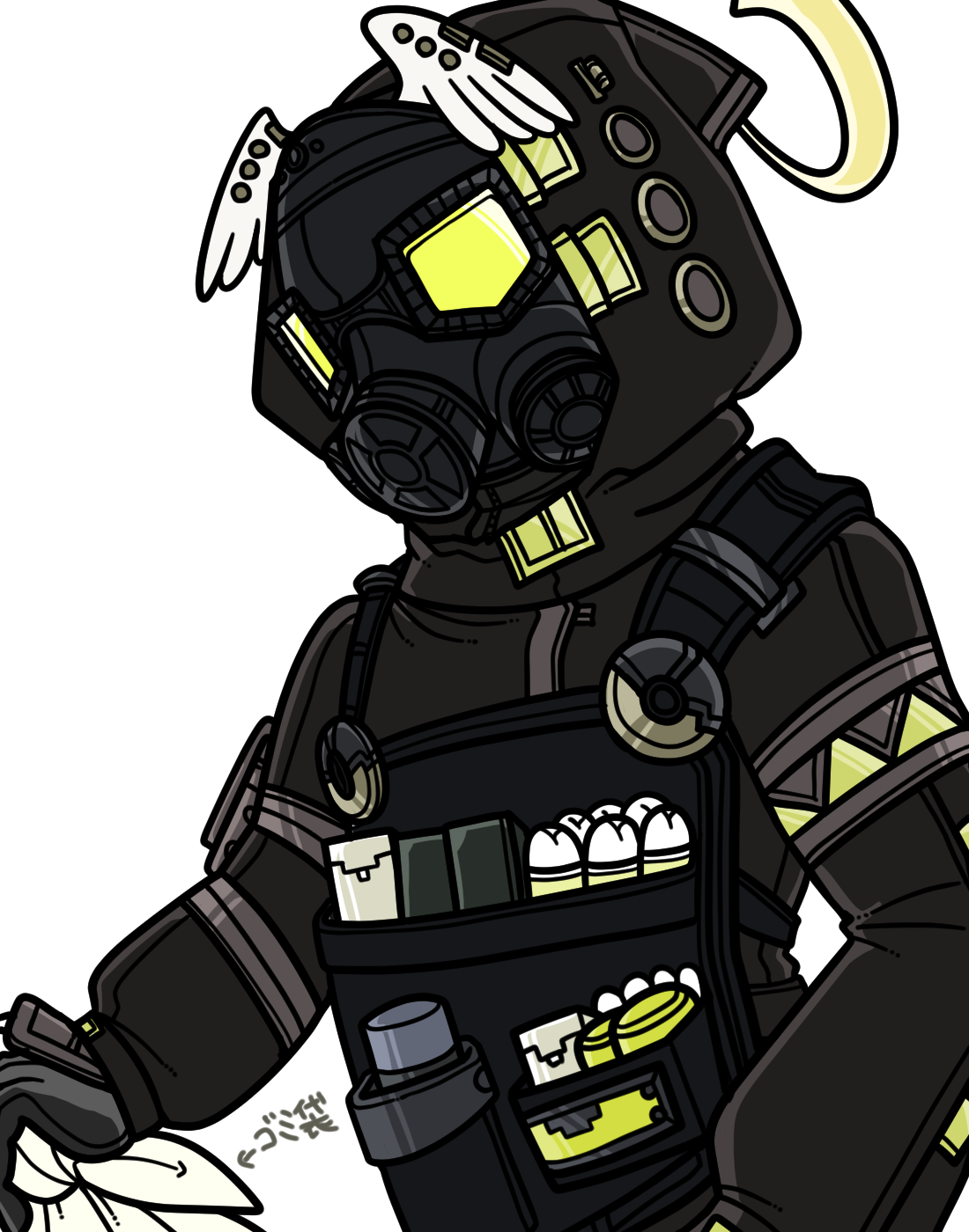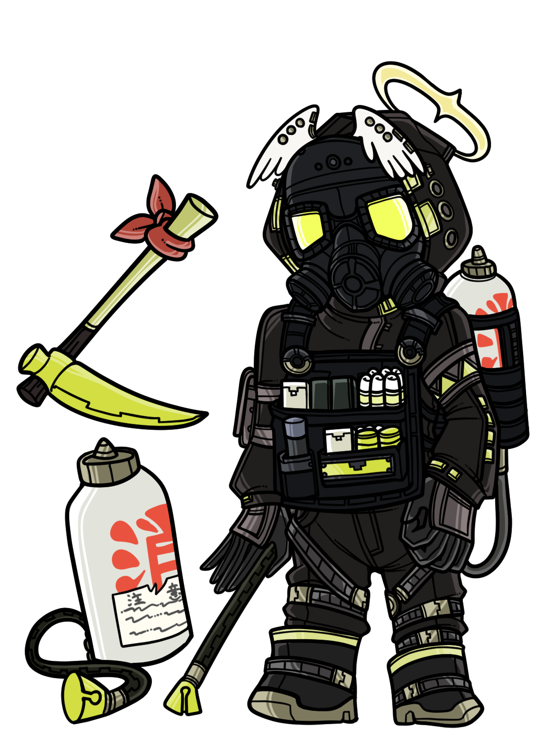 彼女は匂いやほこりに敏感で、いつもガスマスクをして清掃の仕事をしています。また彼女は綺麗好きな面もあるので、黒くて自分自身の汚れが気にならない服にしているそうです。