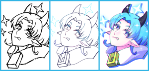 ▲制作過程(左から下書き、線画、完成品)