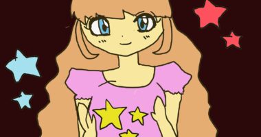 星を手に浮かばせてる女の子を描きました。背景は黒にしてカラフルな星の色にしました。全体的に淡い色を使いました。...
