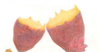 焼き芋のイラストを描きました。 色を何色も重ねました。 繊維感と立体感が出るように塗り方を工夫しま...