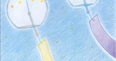 夏の夜に見上げる風鈴を描いてみました。 不自然でなく風で動いている感じを出したくて、紐と短冊の描き方を工...