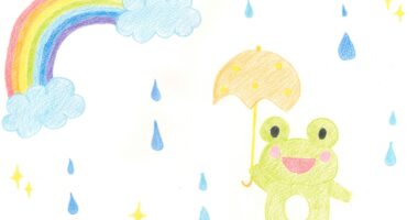 今回は梅雨をテーマに描いてみました(^^)v 虹を丁寧に描けたところ、カエルの表情を明るく描けたところが...