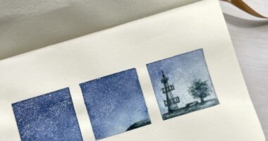 作品詳細 透明水彩の小さな夜-4頁 星空と灯台 ・ホルベイン 透明水彩絵の...