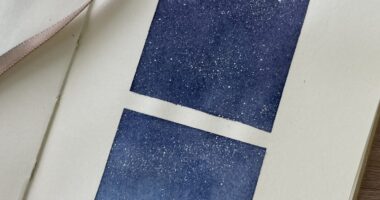 作品詳細 透明水彩の小さな夜-3頁 星月夜と教会 ・ホルベイン 透明水彩絵...