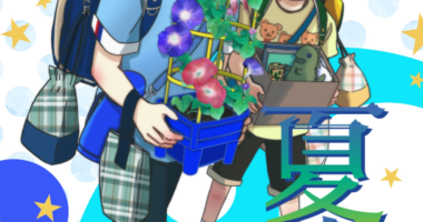 【感想】以前作成した「夏休み」のロゴに合わせてイラストを制作していたのですが、中心の人物に朝顔を持たせたので、...