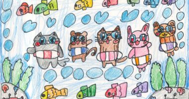 今回は、動物たちと海の生き物を描いてみました! クマくんとウサギちゃんとねこくんとりすくんとオオカミくんで海に遊...