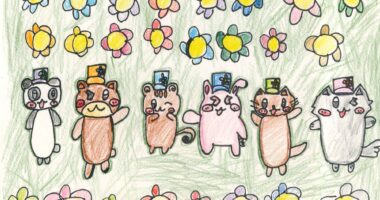 今回は、動物たちとお花を描いてみました。 オオカミ君とネコちゃんとうさぎちゃんとりす君とくま君とパンダ君でお花を...