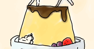 猫×スイーツ(プリン・ア・ラ・モード)を題材にしたこの作品では、柔らかい印象の色味を大事に描きました。 横を向い...