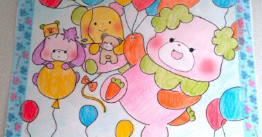 みなさんこんにちは。 こむぎです。 今回はイラストを紹介します。 みんなで風船に乗って空...