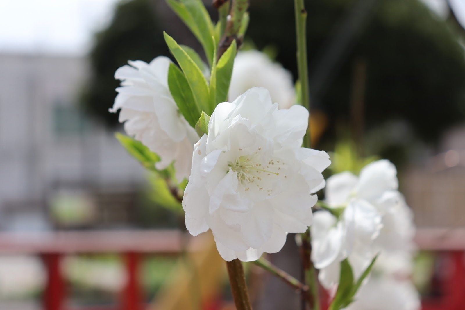市内の神社や市役所に立派な花桃が植えられていて、春に綺麗な花が咲きます。