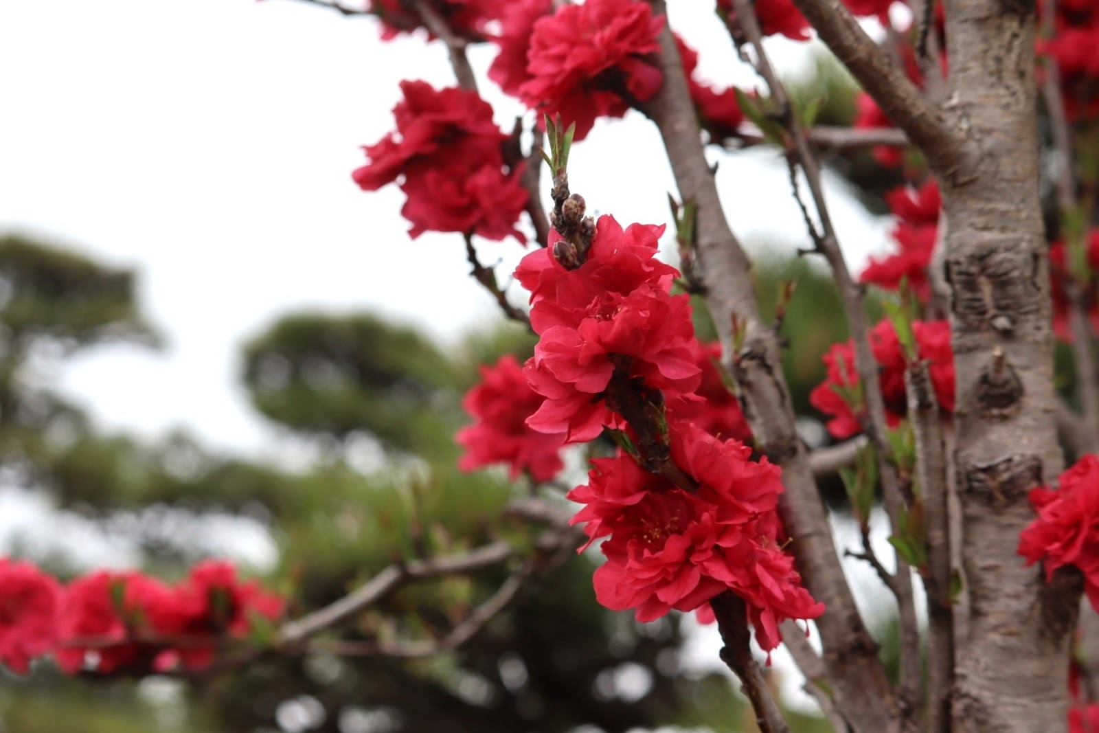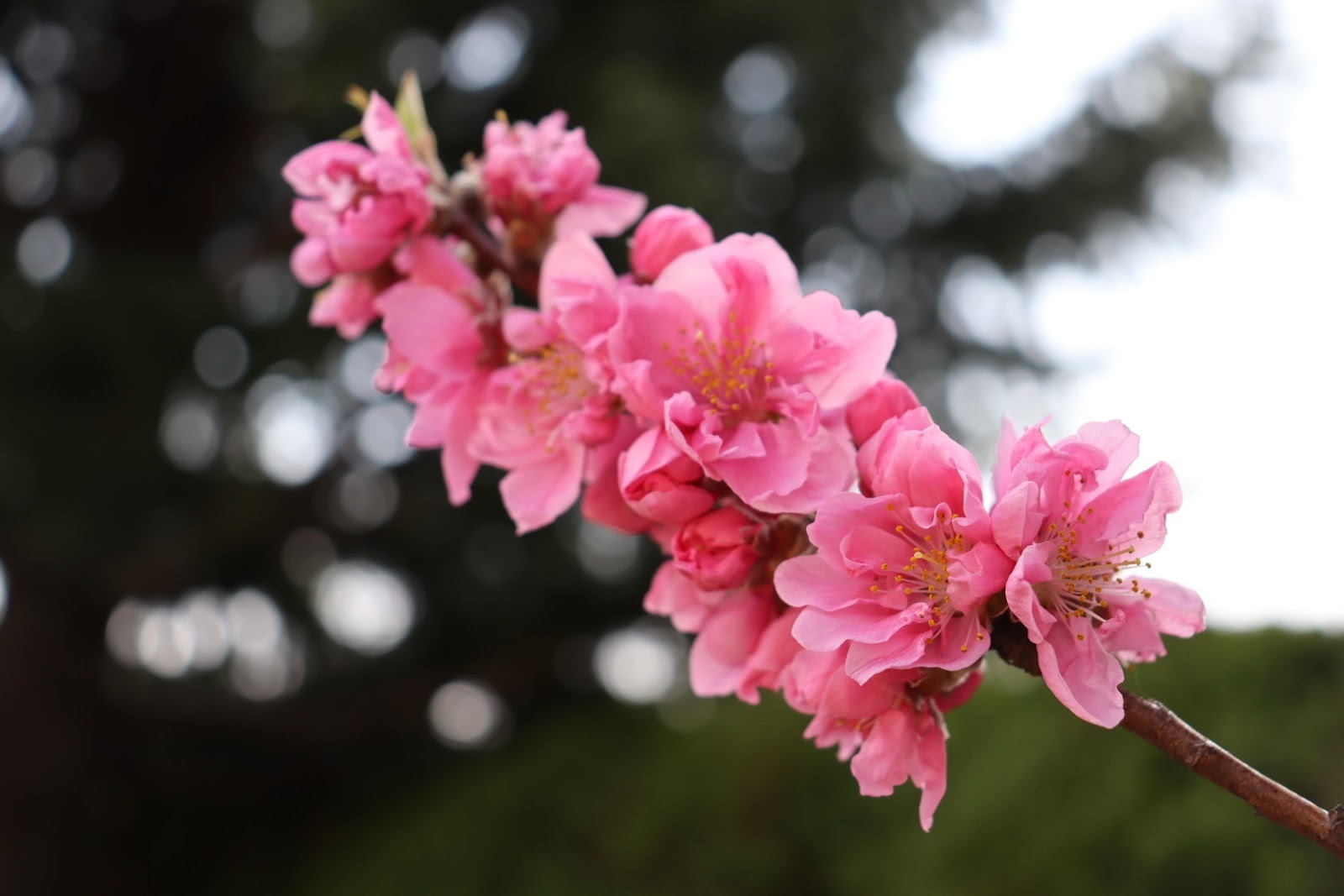 花桃は上向きの枝にたくさんの花が付くので、美しさと力強さを感じることができる花です。