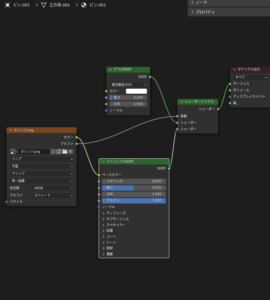 今回の作業はとてもシンプルで「蓋」と「瓶」、そして中身を「Shift+D」でコピーして、中身のマテリアルの色を好きな色に変更し、「瓶」の表面に設定している画像を変えたいもの(今回はこちらとこちらのデータをお借りしました)に変更します。注意してほしいのはコピーしてマテリアルを新規で作成する必要があるところです。そこの設定を怠ると元にした「ジャム」のデータも上書きされてしまうんですね。気をつけましょう。