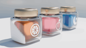 「blender」で作成していていいなと思うのは空をイメージした架空の「ジャム」(右端のものです)のような存在でも手軽に作る事ができるところです。皆さんもこの記事をきっかけにして自分オリジナルの「ジャム」を作ってみてはいかがでしょうか。
