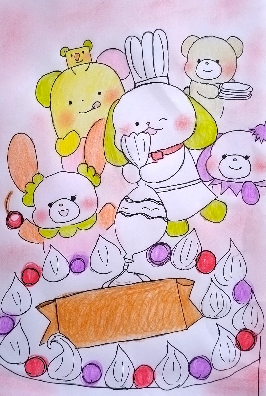 ホールケーキパーティーテーマで描いてみました。
