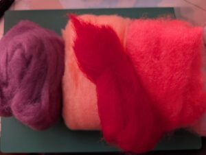 ☆ 5.6色くらいの赤色とピンク色の羊毛フェルトを用意しました♪