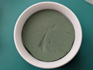 器の中の緑の土台は100円均一の造花が売っているところにありました。