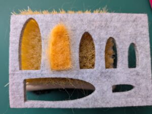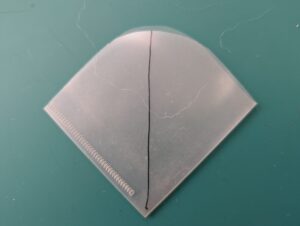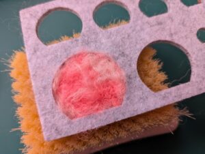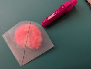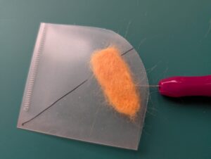 クリアファイルを切ったものです。 羊毛フェルトを挟んで刺していきます。