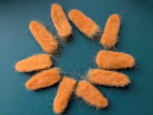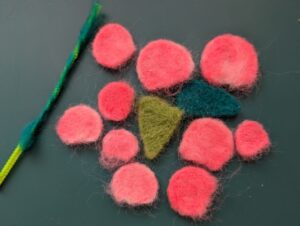 ☆ 見栄えが良いので、すべてのお花には白色の羊毛フェルトを、マゼマゼしました。。