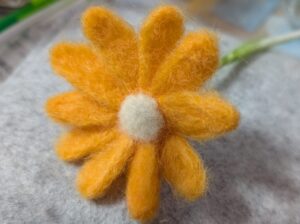 ☆ 羊毛フェルトのひな型で細長い形を選んで? マーガレットっぽい? お花を作ってみます。。