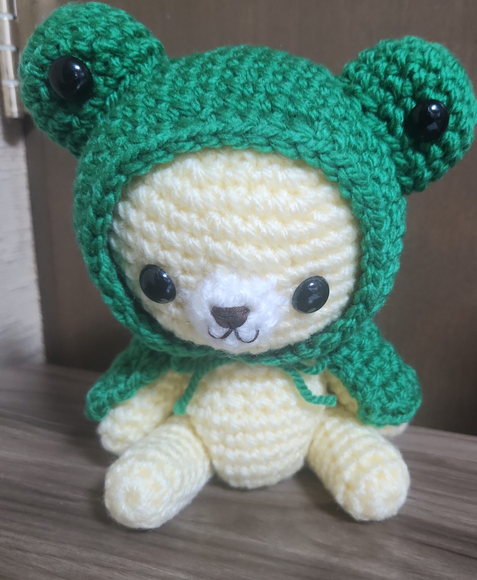 因みに、カエルの帽子やカエルの目元は、編み始めの鎖編み・細編み・細編み増やし目・減らし目だけで編めます。
