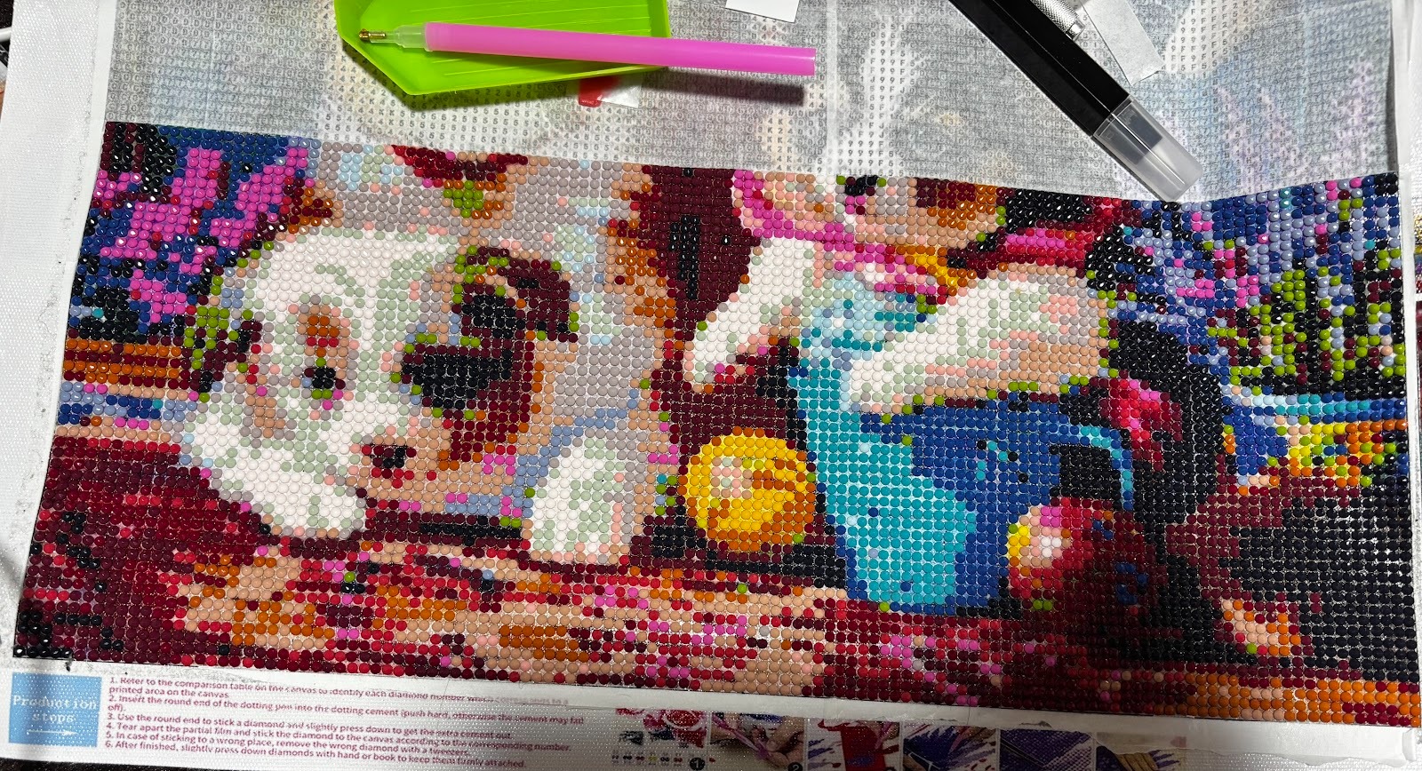 ここまでで難しいところが、三列目の最初が色んな色が使われていたので大変でした。