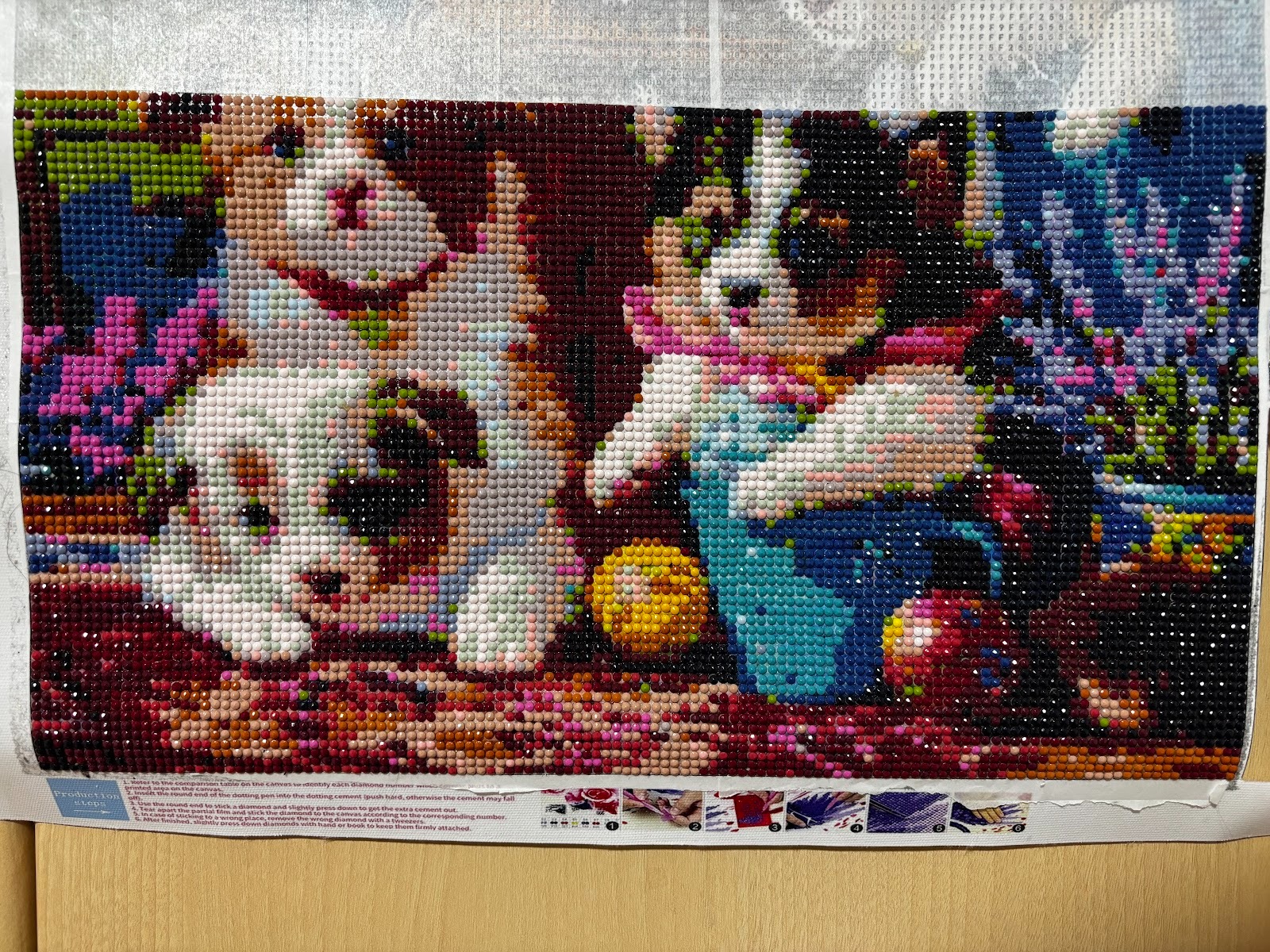 下が完成してワンちゃんが三匹と片手が出てきて、もう一匹出てきますね。