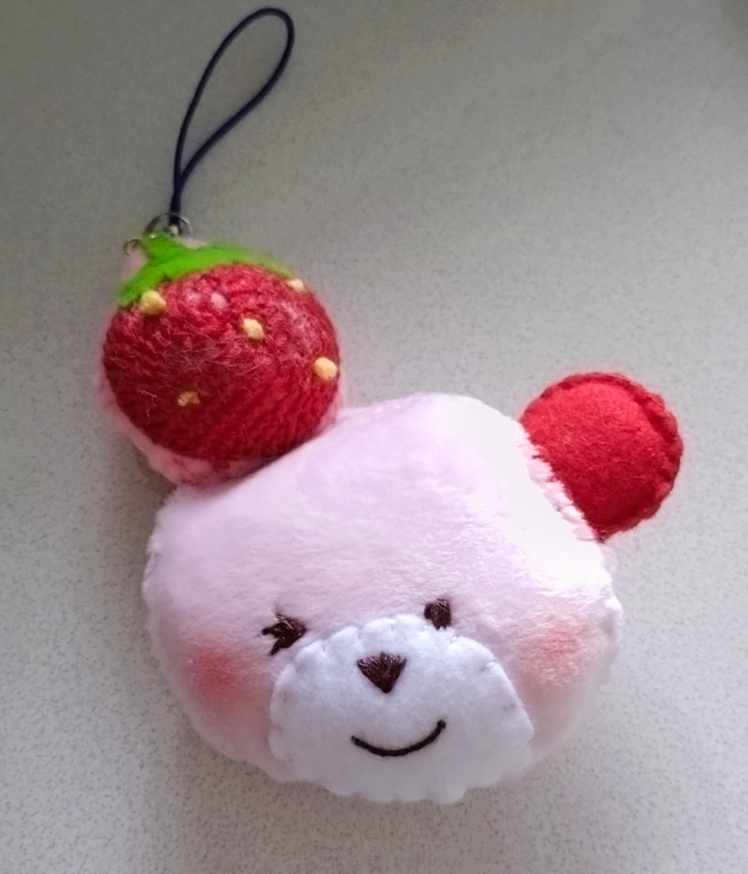 耳の片方がいちごになっていてボタンホールステッチで刺繍しました。