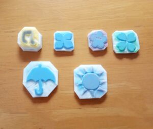 かなり前に100均で消しゴムの切り落とし(徳用)を買いました。お得!と思って買ったものの結局使いきれず、じゃあこれでなにか作ろうか〜ということに。