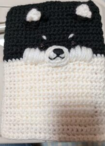 今日は、私が編んだ黒柴のブックカバーを紹介します。